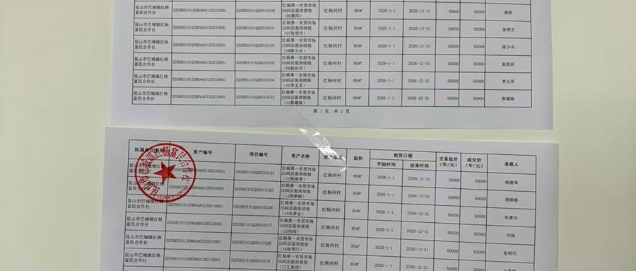 巴城镇红杨河村股份经济合作社-资产清理核销