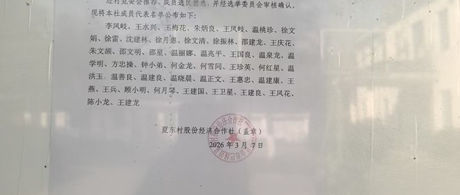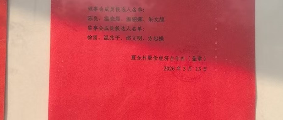 2026年夏东村股份经济换届选举理事会、监事会候选人公告