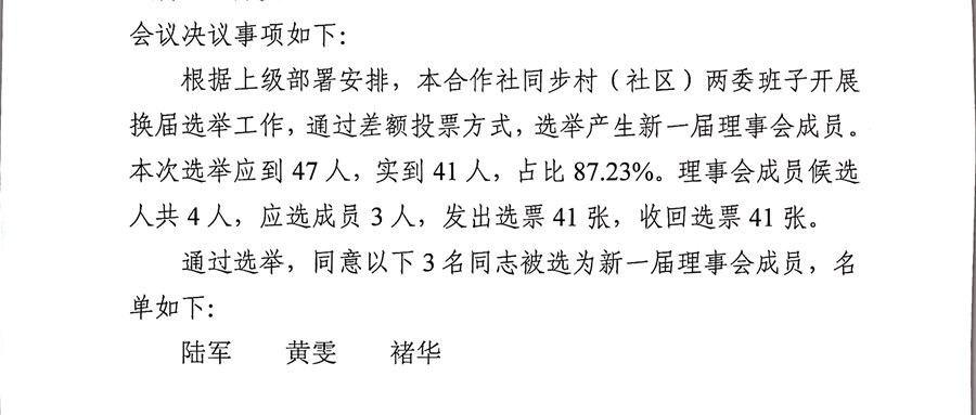 昆山市玉山镇燕桥浜村股份经济合作社选举理事会、监事会、理事长、监事长选举结果公告