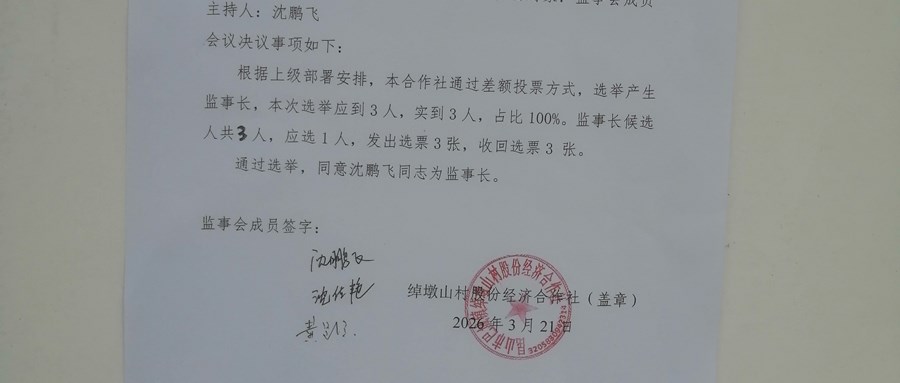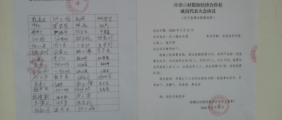 2026年昆山市巴城镇绰墩山村股份经济合作社换届理事会、监事会成员候选人名单第二次公告