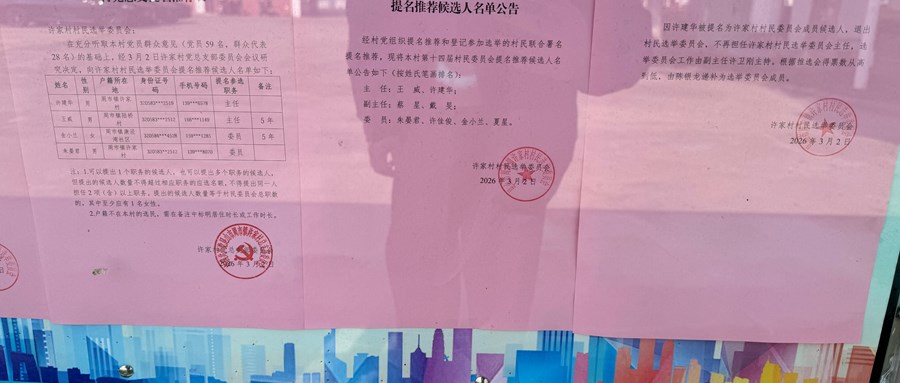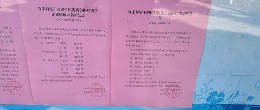 许家村村民委员会正式候选人名单、换届选举日公告
