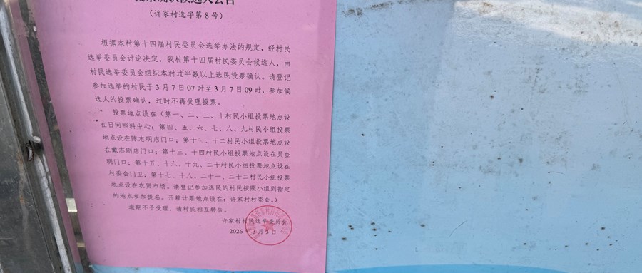许家村村民委员会投票确认候选人公告