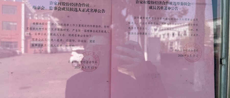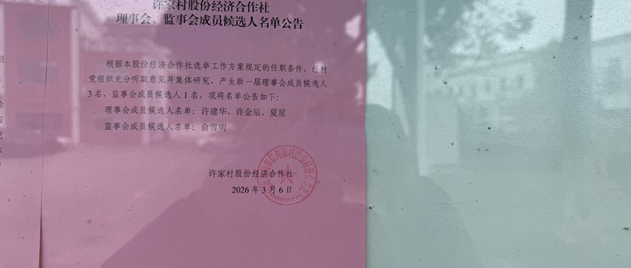 许家村股份经济合作社理事会、监事会成员候选人名单公告