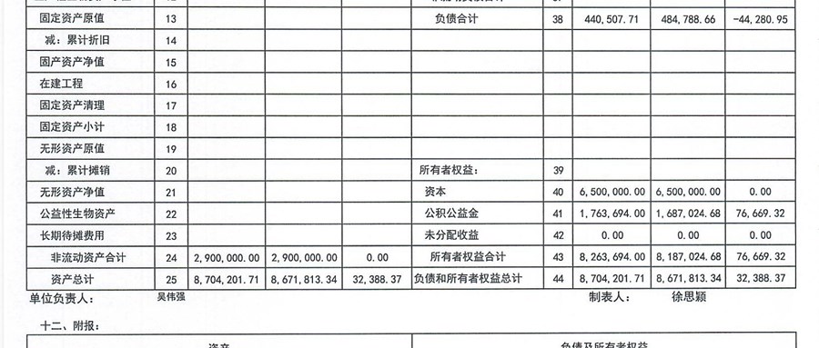 2025年12月横娄村财务报表