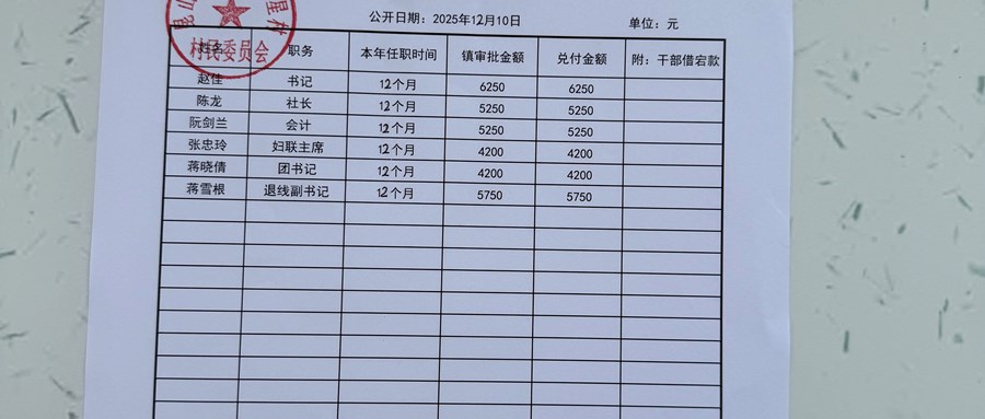 昆山高新区群星村2025年12月份公开村干部基本报酬信息公开图片