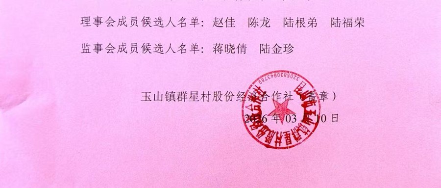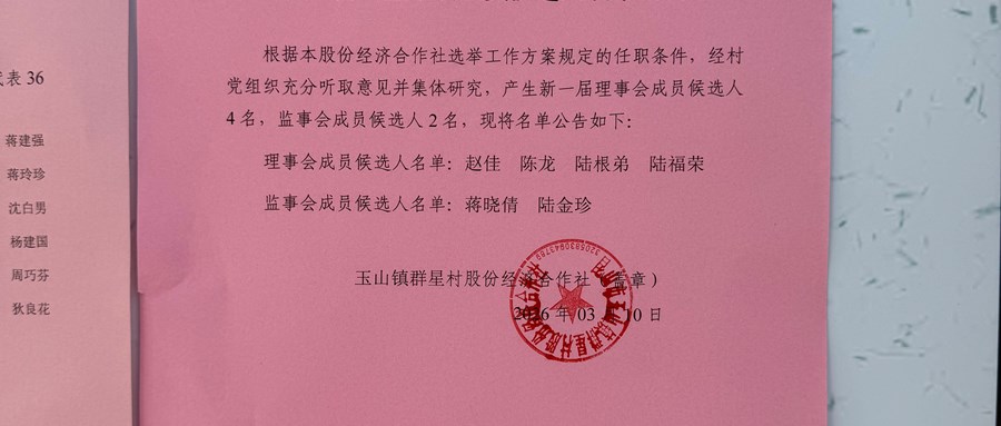 玉山镇群星村股份经济合作社理事会、监事会成员候选人名单公布