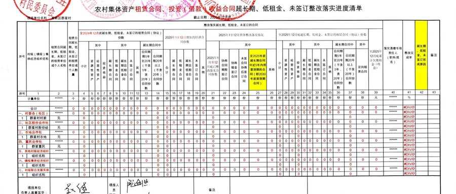 2025年群星村第4季度资产、资源租赁发包经济合同清缴欠租统计表公示