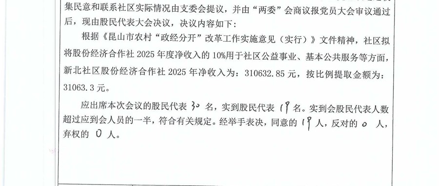 2025年新北股份合作社分红方案及会议公示