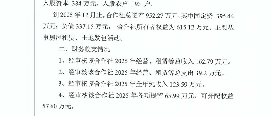 2025年12月新北股份经济合作社财务公示