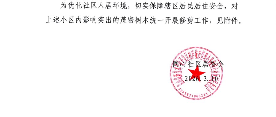 关于辖区内部分区域树木修剪的公示