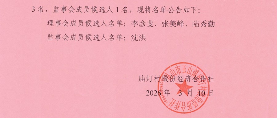 昆山市玉山镇庙灯村股份经济合作社新一届理事会、监事会候选人名单公示
