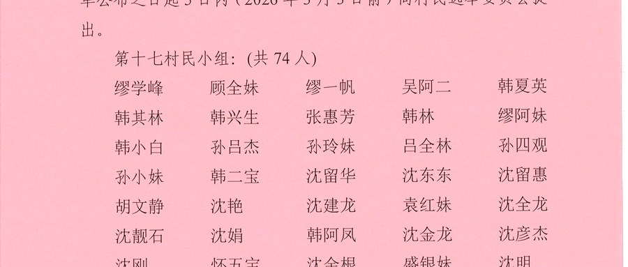 祁浜村第十四届村民委员会换届选举选民名单公告2