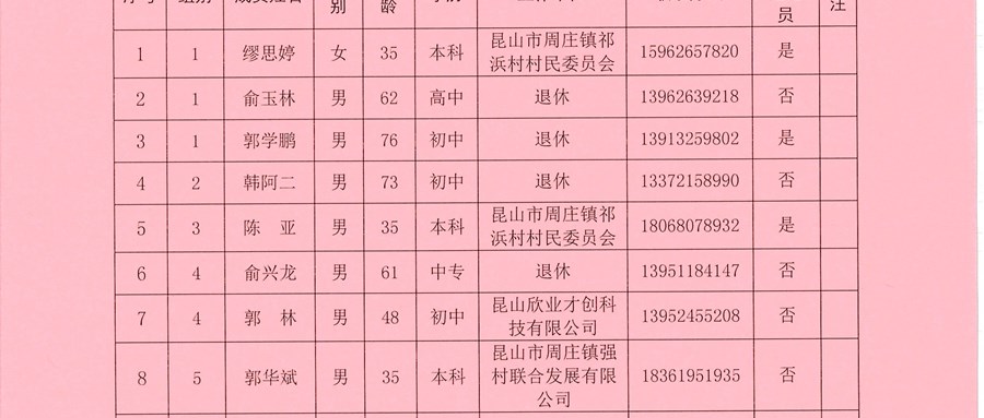 祁浜村股份经济合作社成员代表名单公告