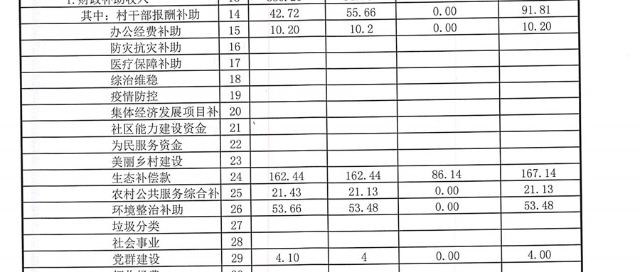 2025年第四季度村级经济收入、支出预算及