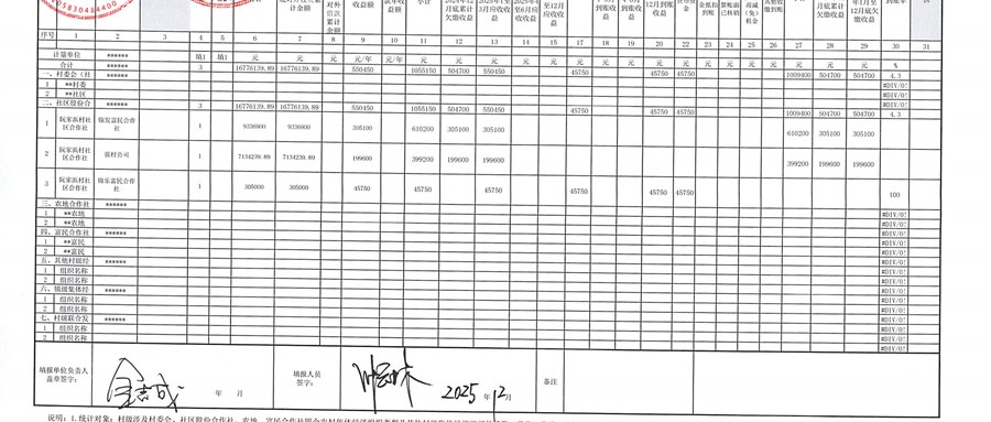 2025年12月份农村集体资产、资源租赁发