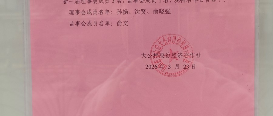 大公村股份经济合作社理事会、监事会决议公示(理事会、监事会选举)