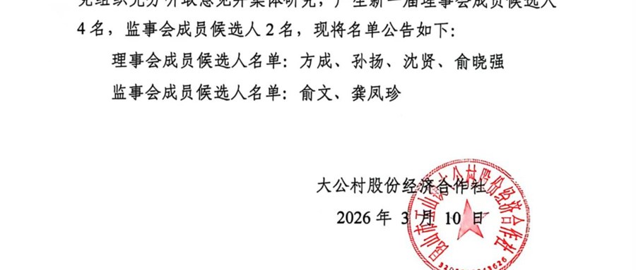 大公村股份经济合作社理事会、监事会成员候选人名单公告