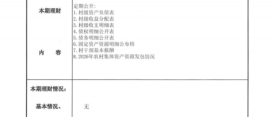 2026年1月财务公开(村级定期公开)