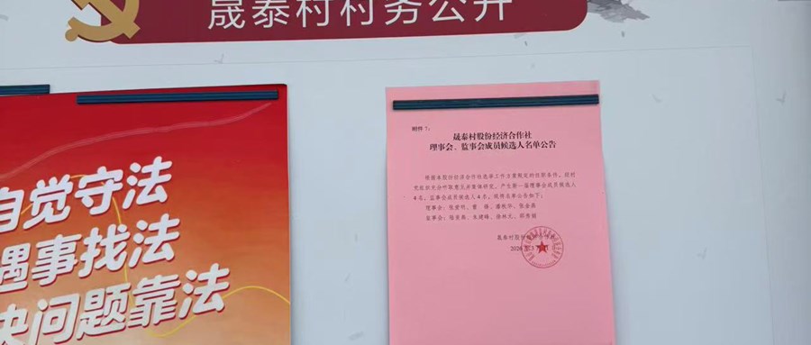 2026年晟泰村股份经济合作社理事会、监事会成员候选人名单公告