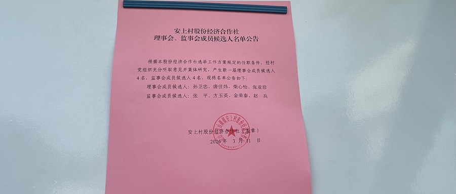 安上村股份经济合作社理事会、监事会成员候选人名单公告