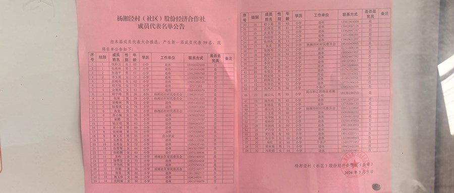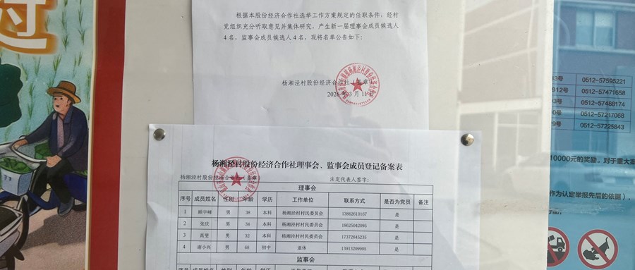 杨湘泾村经济组织换届选举理事会、监事会成员候选人名单公示