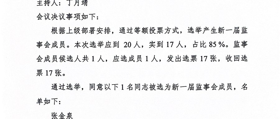 支浦村股份经济合作社成员(代表)大会决议 (关于监事会换届选举)