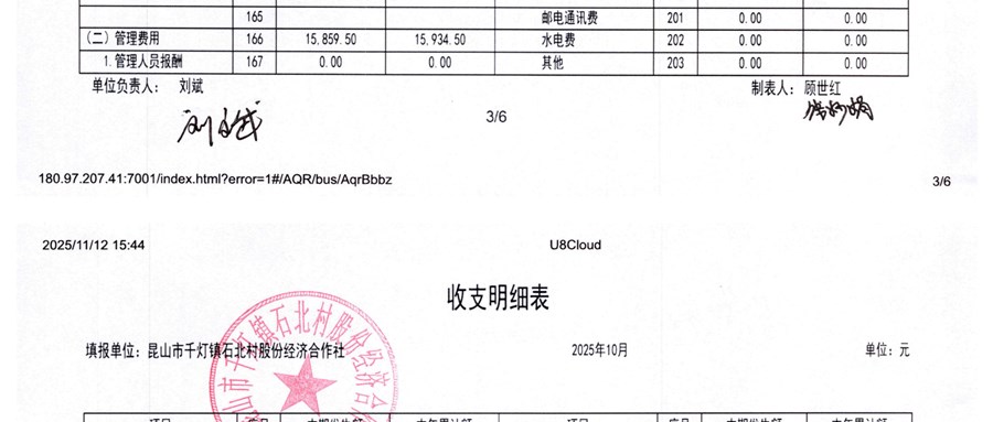 2025年11月石北村股份经济合作社财务公