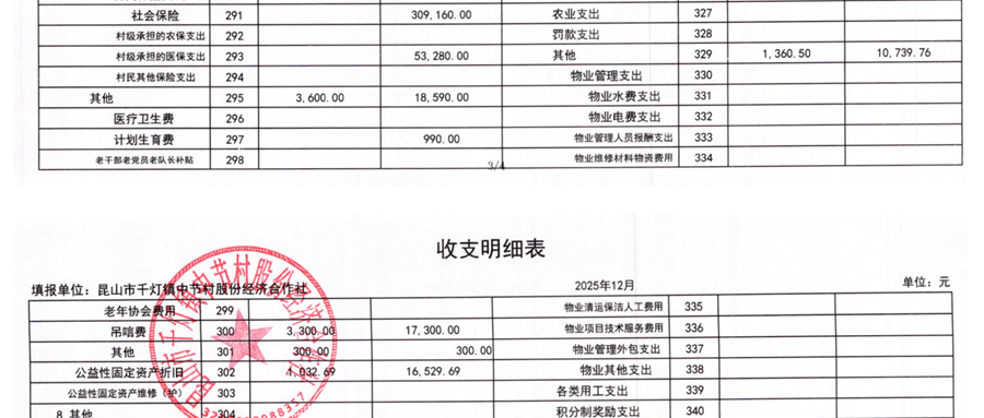 2025年12月中节村股份经济合作社财务公开