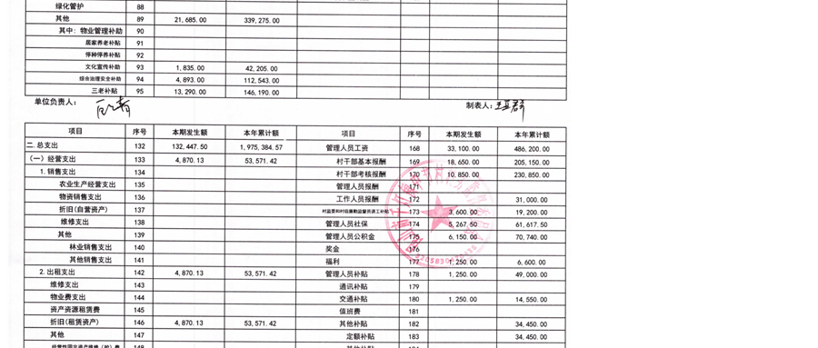 2025年11月中节村村委会财务公开