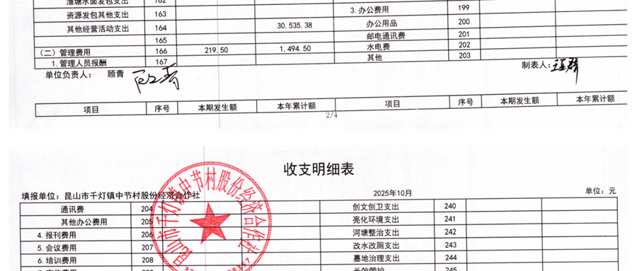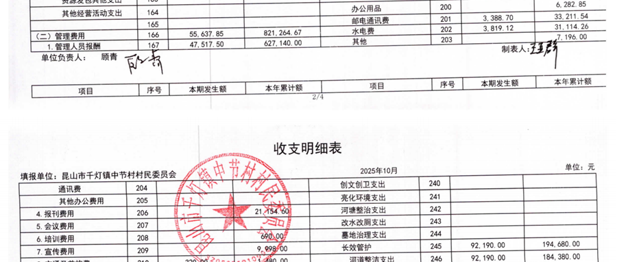 2025年度上半年中节村委会和村股份合作社经济预算调整公开