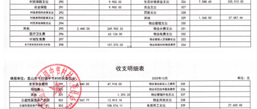 2025年12月中节村村委会财务公开