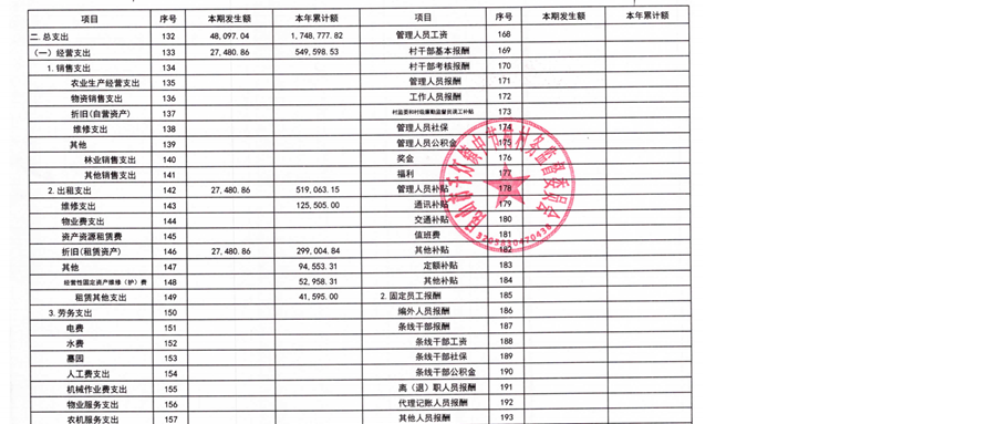 2025年12月中节村股份经济合作社财务公