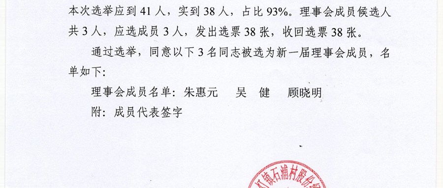 石浦村股份经济合作社理事会、监事会成员候选人名单公告