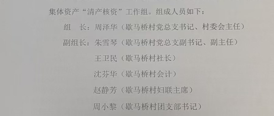 成立歇马桥村农村集体资产“清产核资”工作小组及会议记录公示
