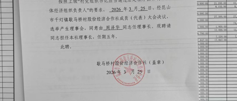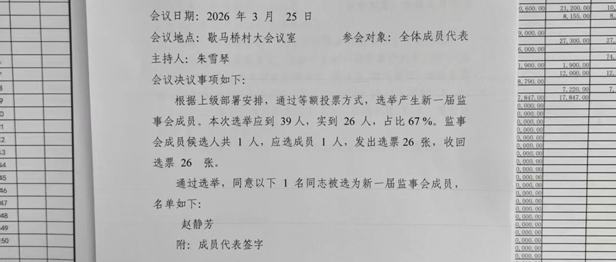 歇马桥村股份经济合作社关于监事会换届选举成员(代表)大会决议