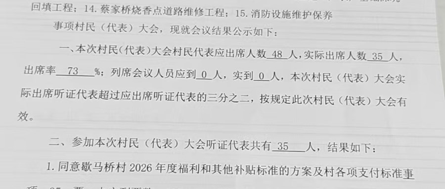 2026.3.25歇马桥村村级重大事项 听证会结果表