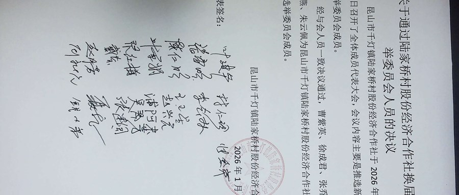 通过陆家桥村股份经济合作社换届选举委员会人员决议