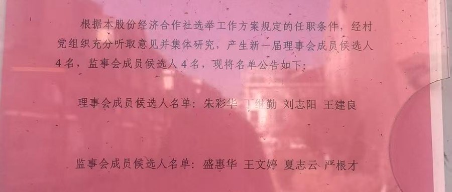 新乐村股份经济合作社理事会、监事会成员候选人名单公示