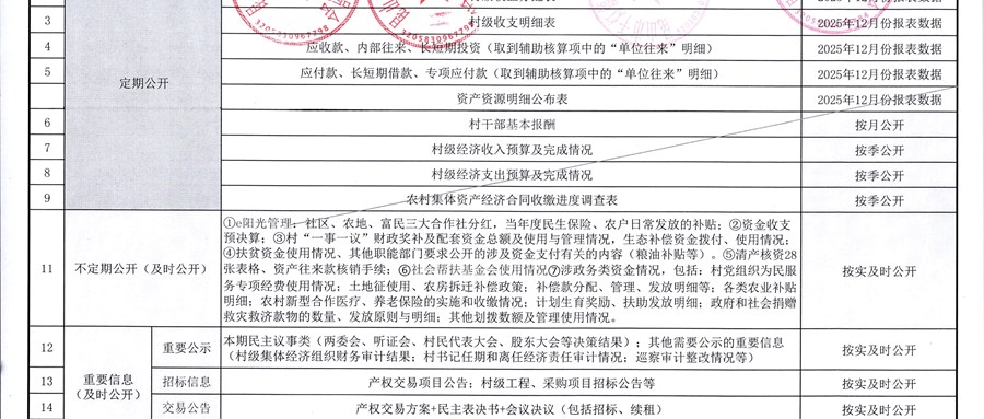 2025年12月份施家泾村财务公开