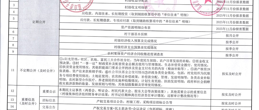 2025年11月份施家泾村财务公开