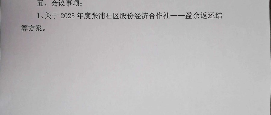 关于2025年度张浦社区股份经济合作社——盈余返还结算方案事项会议决策