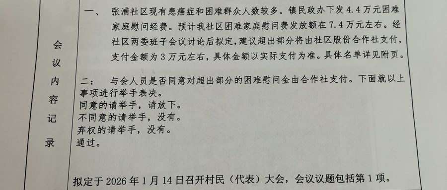 关于2025年度张浦社区股份经济合作社——2026年春节前困难家庭慰问事项会议决策