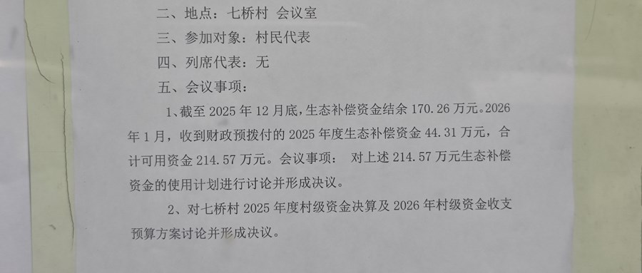 七桥村民委员会生态补2025年决算和2026年预算及股份经济合作社预决算会议决议