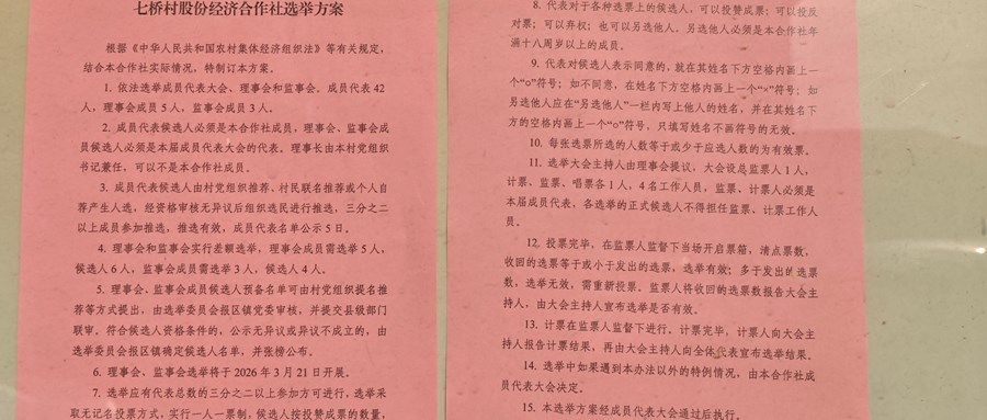 七桥村2025年度股份经济合作社、农地股份合作社、鸿鹏富民合作社方案公示