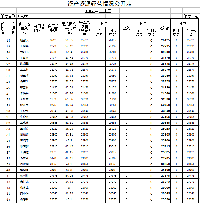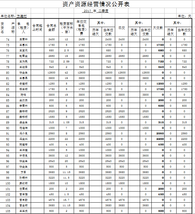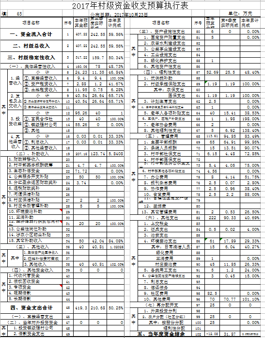 方港村2017年第三季度财务公开