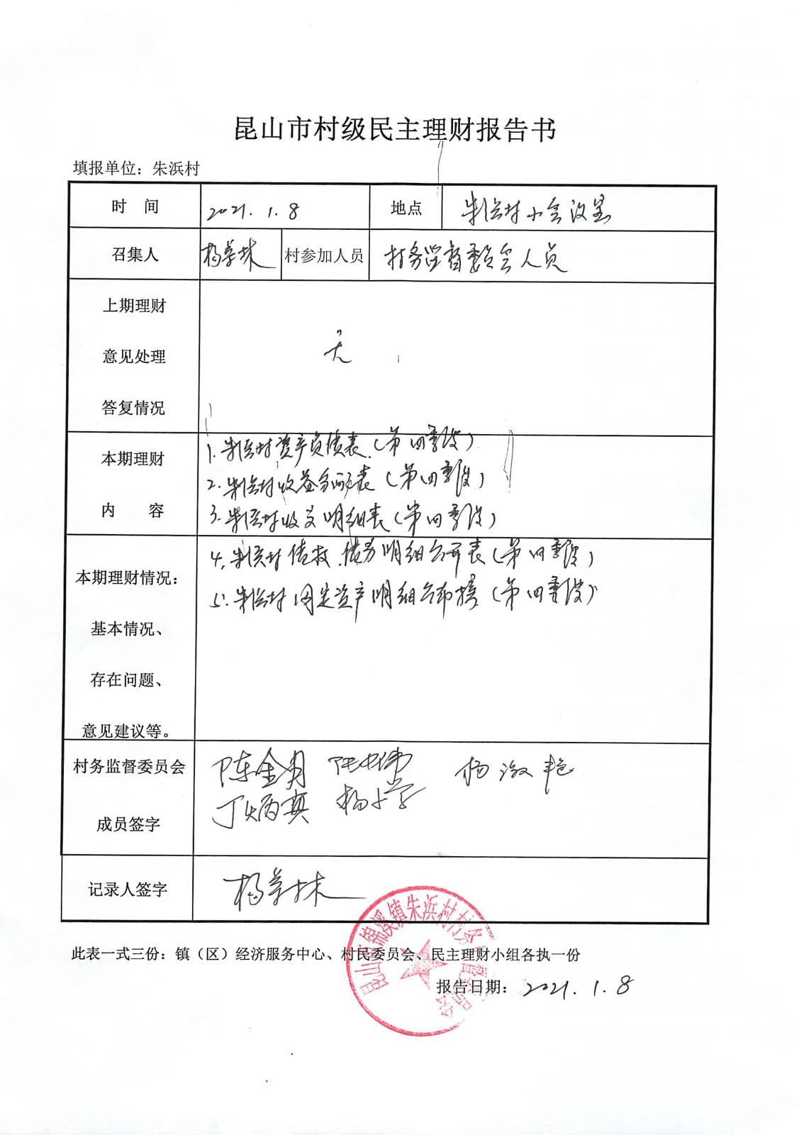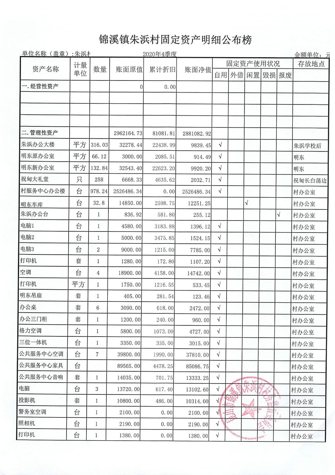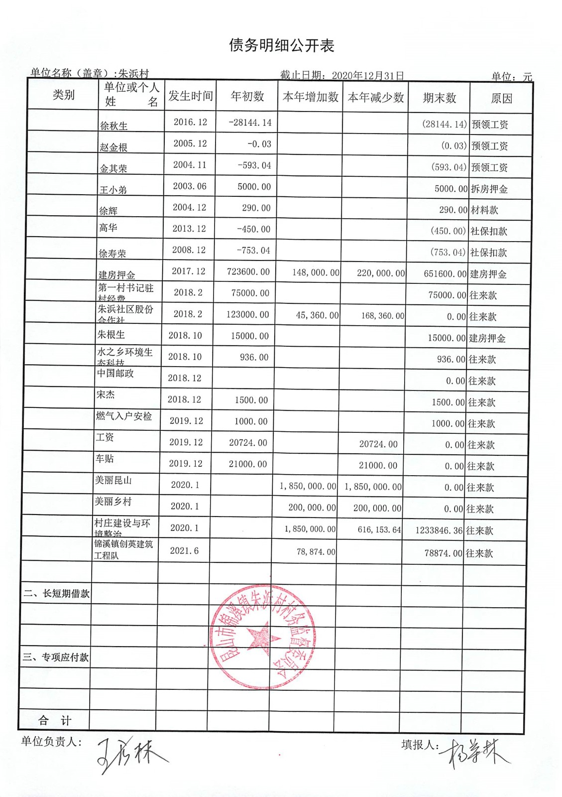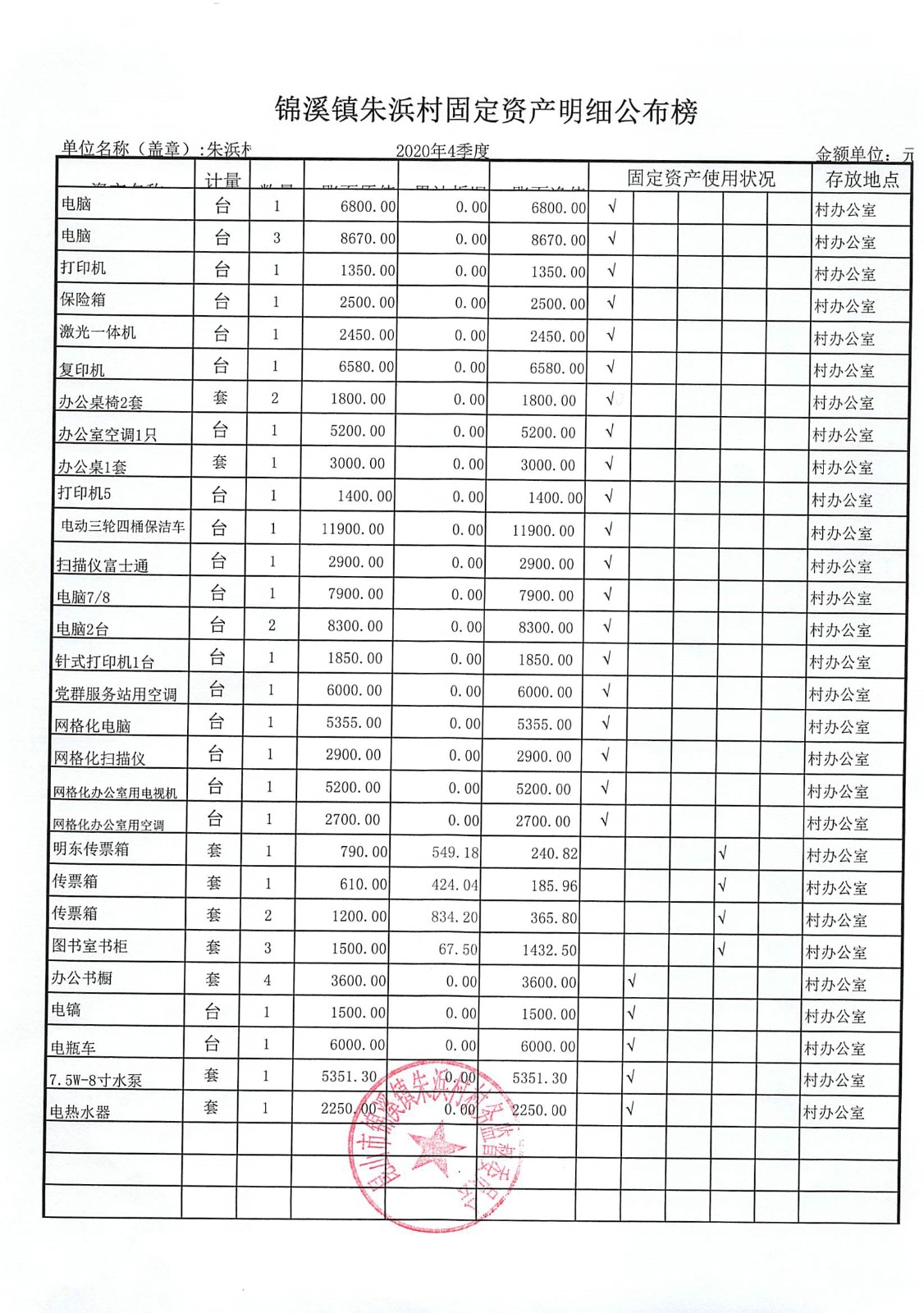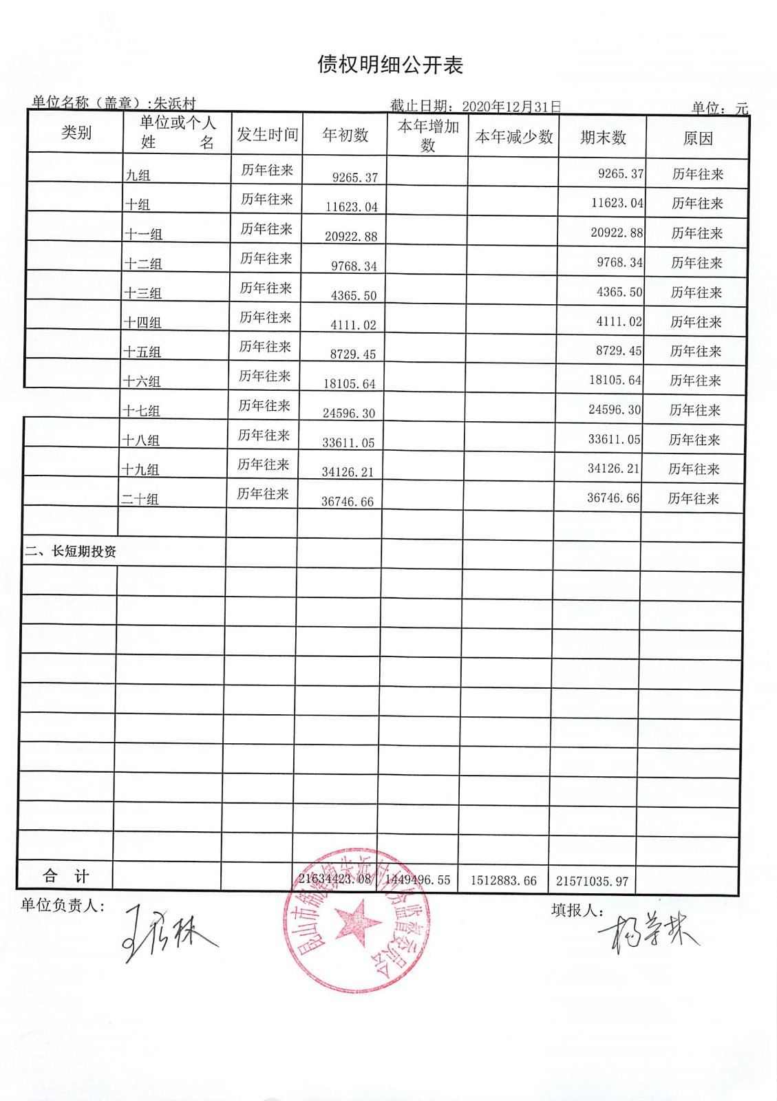 2020年朱浜村第四季度财务公开资料