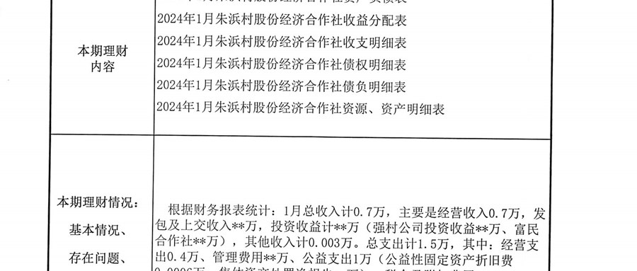 2024年朱浜村(社区)1月份财务公开资料
