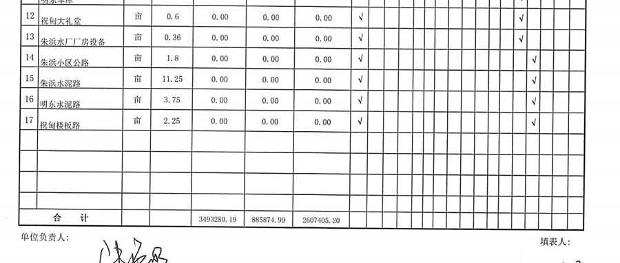 村盖章事项名录