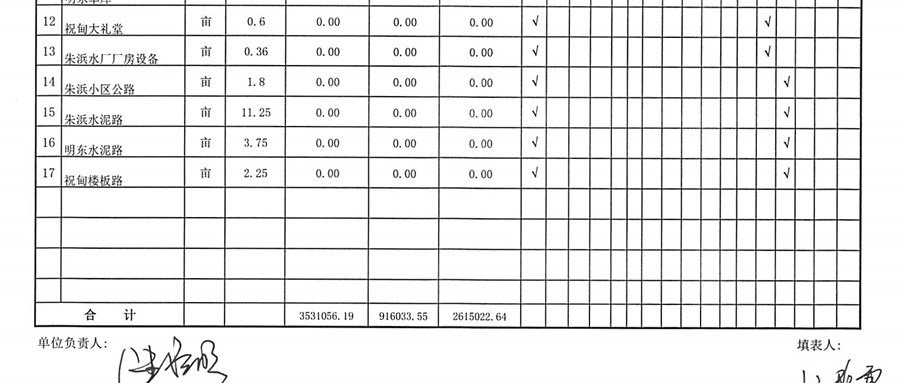 村盖章事项名录