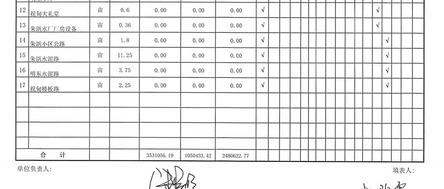 村盖章事项名录